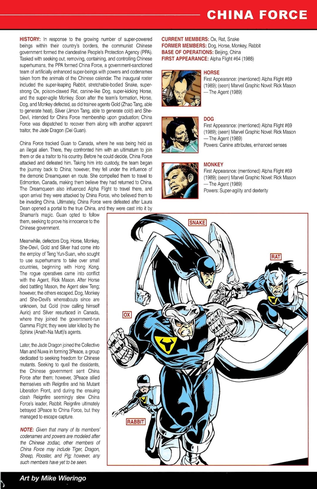 Please Note: Entries are taken from ALL-NEW OFFICIAL HANDBOOK OF THE MARVEL UNIVERSE A TO Z (2006) #2 and MIGHTY AVENGERS: MOST WANTED FILES (2007) with minor formatting changes.