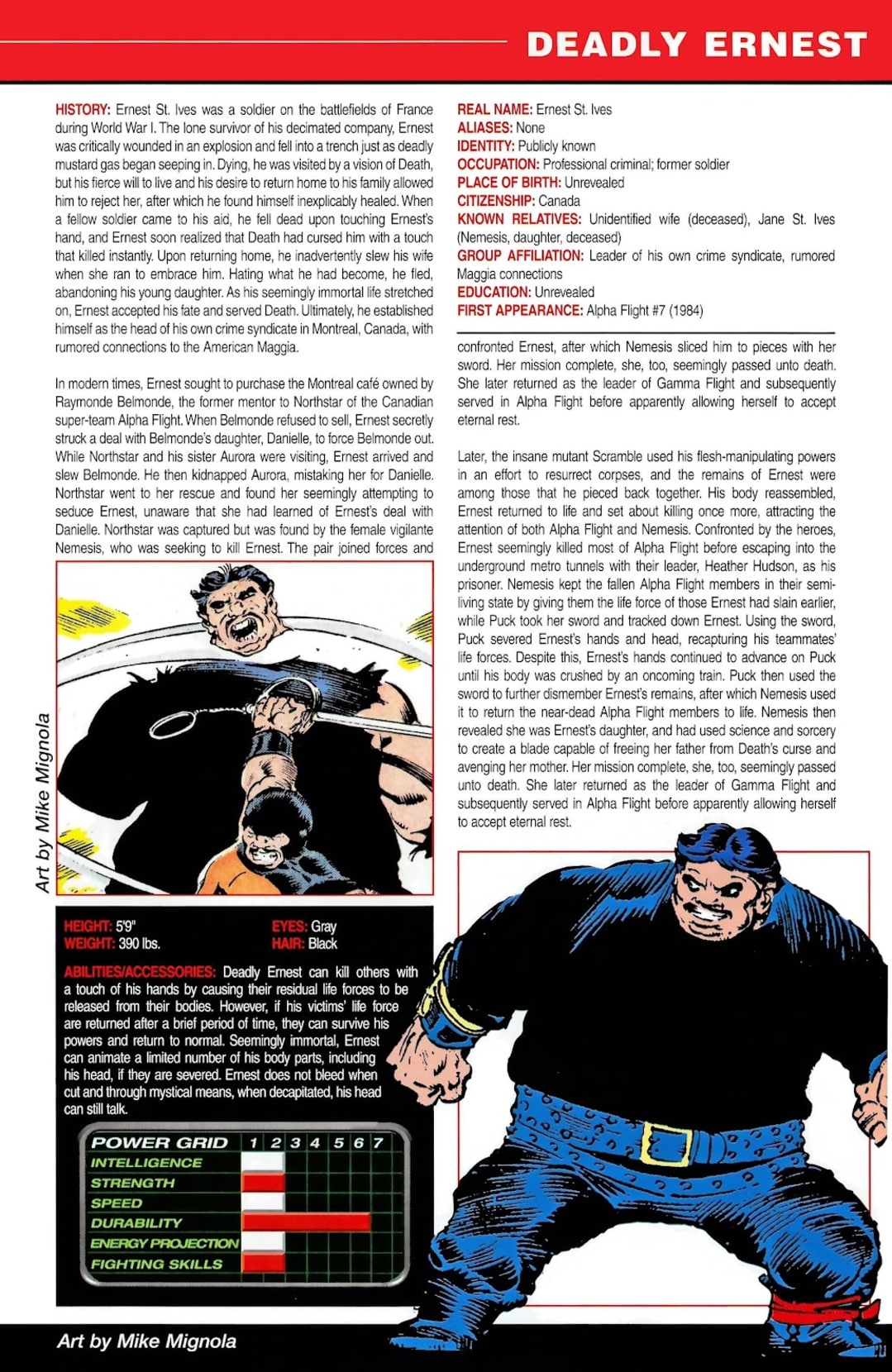 Please note: Entries here are taken from ALL-NEW OFFICIAL HANDBOOK OF THE MARVEL UNIVERSE A TO Z (2006) #2, MARVEL LEGACY: THE 1980's HANDBOOK (2007) #1 and ALL-NEW OFFICIAL HANDBOOK OF THE MARVEL UNIVERSE A TO Z (2006) #3 with minor formatting changes.