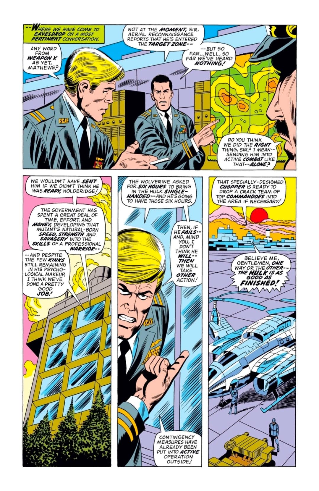 Please note: This issue was released before the creation of Alpha Flight, and is included here due to the retcon to have Wolverine working for Department H.