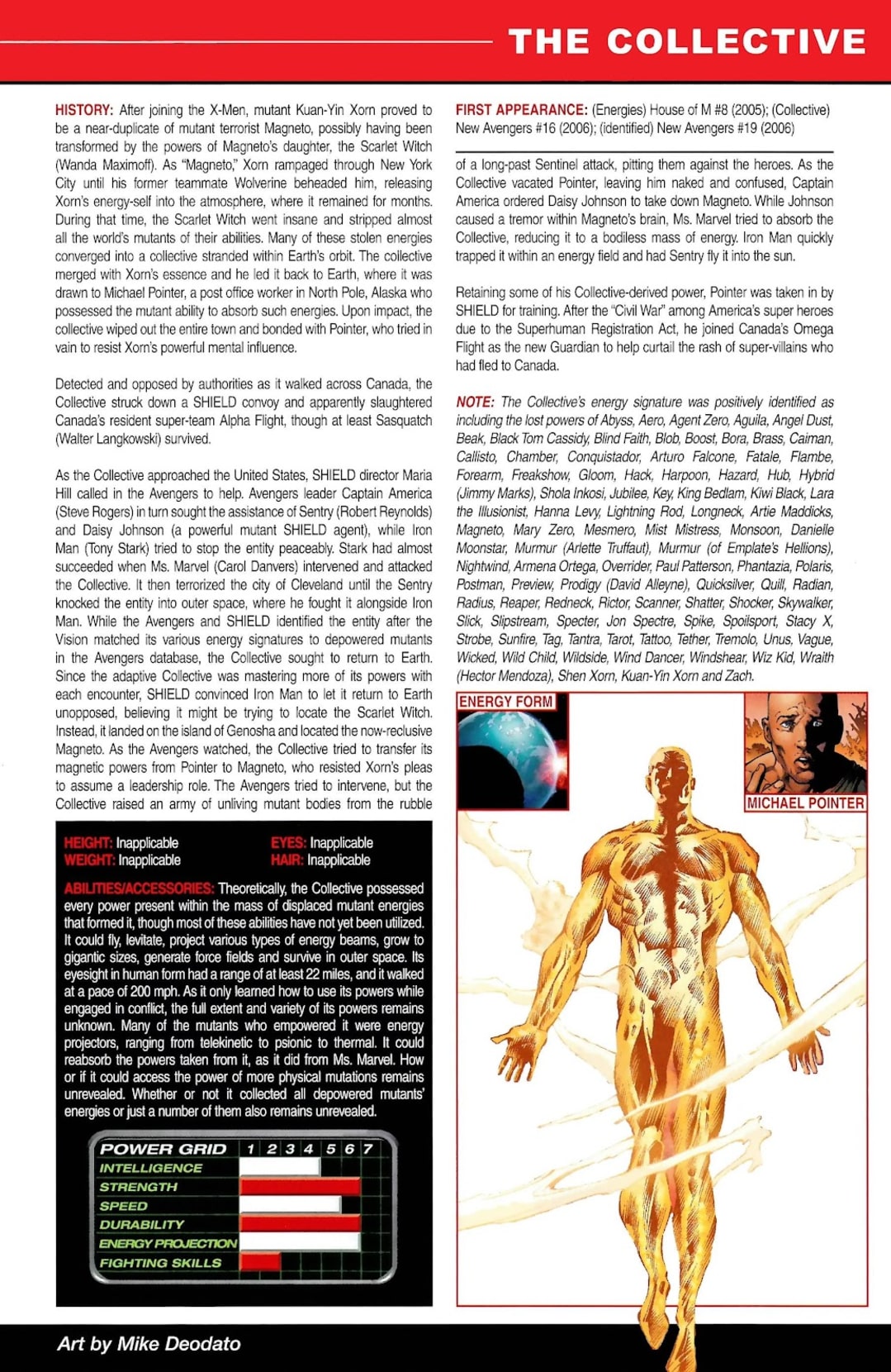 Please Note: Entries are taken from ALL-NEW OFFICIAL HANDBOOK OF THE MARVEL UNIVERSE A TO Z (2006) #2 and MIGHTY AVENGERS: MOST WANTED FILES (2007) with minor formatting changes.
